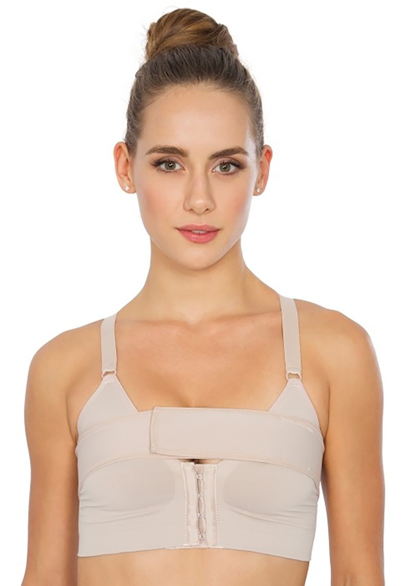 Faixa com ajuste em velcro. Minimiza inchaços. Tecido compressão constante. Estabiliza e posiciona as mamas. Alta respirabilidade.